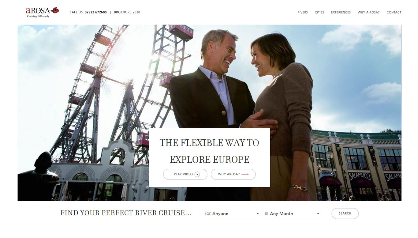 With ‘cruising differently’ as its strapline, the website explains the key USP’s that make A-Rosa stand out from other river cruise lines. This has been laid out in varies sections, from sustainability and flexibility to multigenerational river cruising, among others.