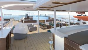 Set within the bow of the ship is a two-level glass lounge, which will be home to the Sylvia Earle Science Centre, the hub of the line’s citizen science programme.