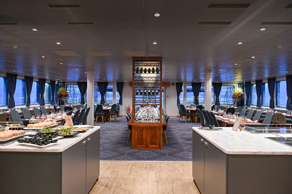 A guest observation lounge located in the bridge – a Coral Expeditions trademark – will allow passengers to immerse themselves in the navigation activity and interact with crew along the way. Meanwhile, the Barralong Room, a multi-purpose space created in partnership with the Australian Geographic Society, will host interpretive activities and projects that connect guests in an engaging format throughout their voyage experience.