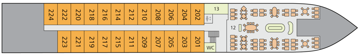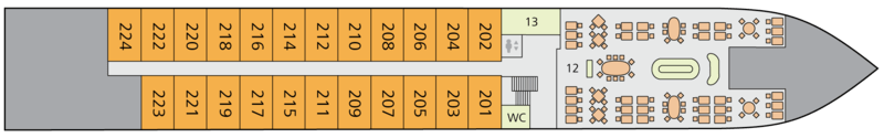 | Launch year | Language | Length | Width | Currency | Speed | Capacity | Deck count | Cabin count | Electrical plugs |
