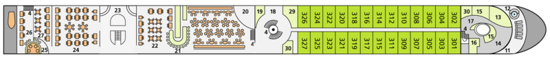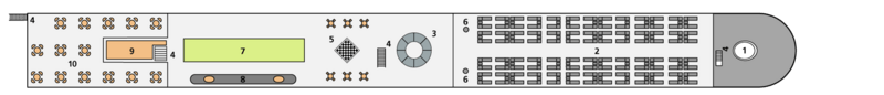 | Launch year | Language | Gross tonnage | Length | Width | Currency | Speed | Capacity | Crew count | Deck count | Cabin count | Large cabin count | Electrical plugs |