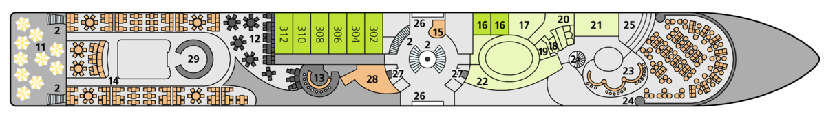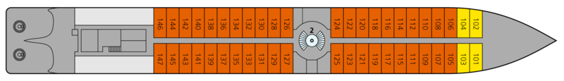 | Launch year | Language | Gross tonnage | Length | Width | Currency | Speed | Capacity | Deck count | Cabin count | Large cabin count | Electrical plugs |