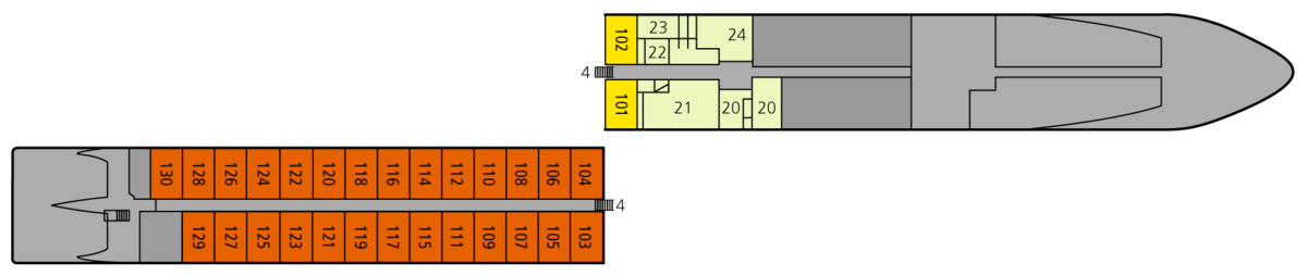 | 2005 | de+en | 125.8 meters | 11.4 meters | EUR | 13 knots | 174 | 4 | 86 | 2 |