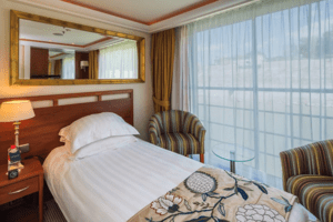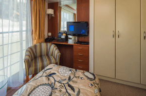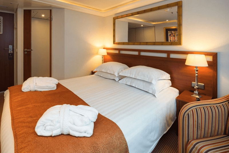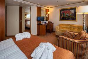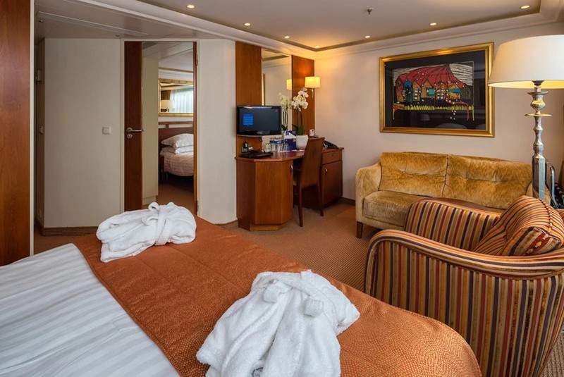 Additional stateroom amenities include Entertainment-On-Demand, featuring free high-speed Internet access, unlimited Wi-Fi, movies, music and English language TV stations; climate-controlled air conditioning; and an in-room safe. In the marble bathroom, enjoy multi-jet showerheads, soothing bath and body products, robes and hair dryers. Suites feature added enhancements, including a larger sitting area with sofa and two chairs, and an expansive bathroom complete with a bathtub and separate shower.
