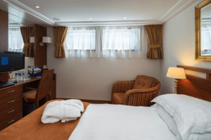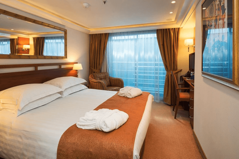 Decorated in a vibrant palette of gold and orange, the 144-passenger AmaCello debuted in 2008. As you walk on board and are greeted by a warm welcome and a flute of bubbly from the staff, you’ll be treated to a distinctive river cruise experience. Relax in spacious, elegantly appointed staterooms, ranging in size from 170-225 sq. ft., or in a single stateroom of 140 sq. ft. You can always indulge even more in one of the suites at 255 sq. ft. Most staterooms have a French balcony.