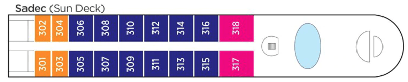 Launch year | Language | Length | Width | Currency | Capacity | Crew count | Deck count | Cabin count | Large cabin count | Wheelchair cabin count | Electrical plugs |