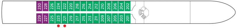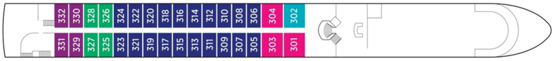 Launch year | Language | Gross tonnage | Length | Width | Currency | Capacity | Crew count | Deck count | Cabin count | Large cabin count | Wheelchair cabin count | Electrical plugs |