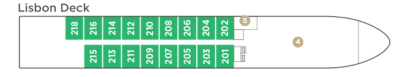 Launch year | Language | Gross tonnage | Length | Width | Currency | Speed | Capacity | Crew count | Deck count | Cabin count | Electrical plugs |