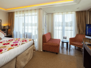Every feature in an AmaWaterways stateroom was thoughtfully conceived with the comfort of their guests in mind. Their staterooms start at 160 square feet, and suites can be as large as 350 square feet, giving you more space to sit back and relax in between meals and explorations∘ Artfully crafted to a first-class standard, each room is equipped with innovative designs, plush bedding, multi-jet shower-heads, and many other special touches that make you feel like you’re getting the royal treatment∘ Most of the staterooms have a balcony — or two — so you can enjoy stunning views of the magnificent sights along the river’s edge∘