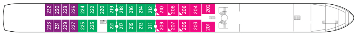 Launch year | Language | Length | Width | Currency | Capacity | Crew count | Deck count | Cabin count | Large cabin count | Electrical plugs |