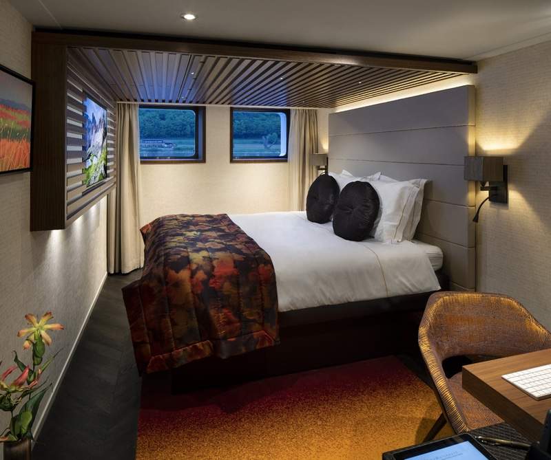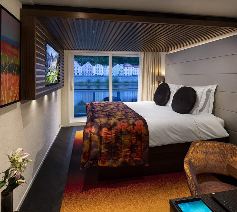 Most of the staterooms on our fleet feature not just one, but two private balconies — a French balcony and a full outside balcony. Together, they provide a unique panoramic view of the beautiful sights along the river and maximise the natural light coming in. With twin balconies, you can enjoy the river however you like.Category OS