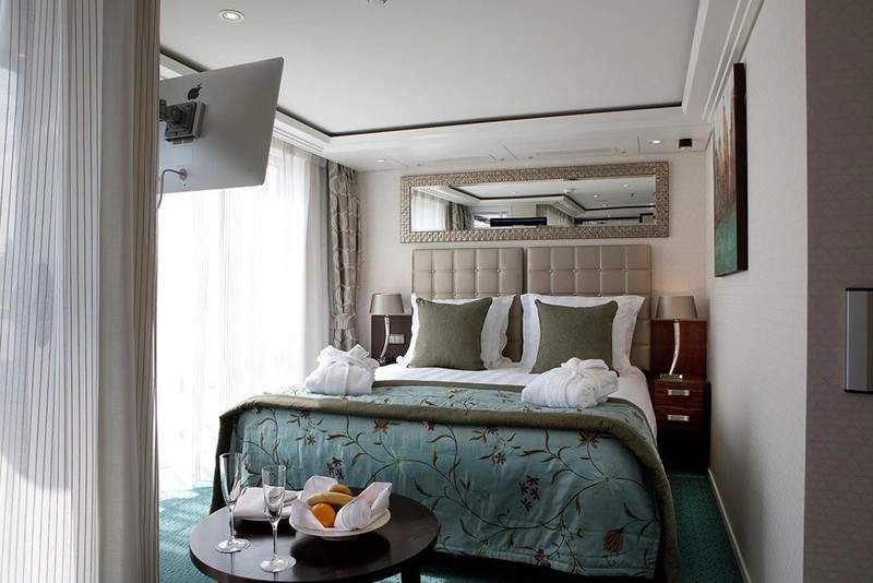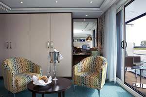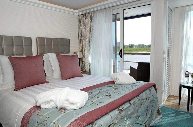 Enjoy panoramic views and plenty of fresh air in our lavish twin-balcony staterooms that feature both a French balcony and an outside balcony.
