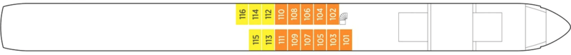 Launch year | Language | Gross tonnage | Length | Width | Currency | Speed | Capacity | Crew count | Deck count | Cabin count | Large cabin count | Wheelchair cabin count | Electrical plugs |