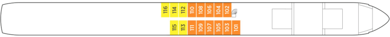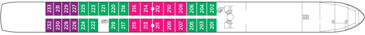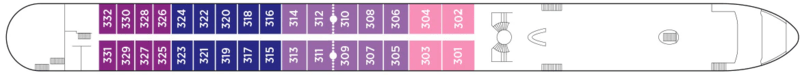 Launch year | Language | Gross tonnage | Length | Width | Currency | Speed | Capacity | Crew count | Deck count | Cabin count | Large cabin count | Wheelchair cabin count | Electrical plugs |