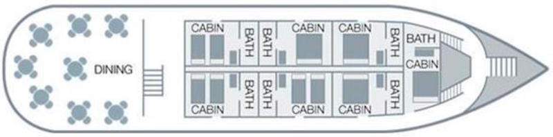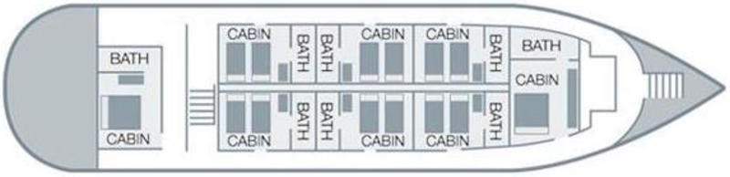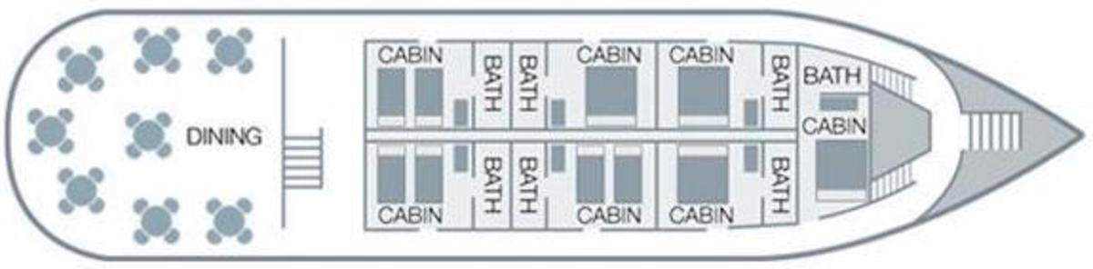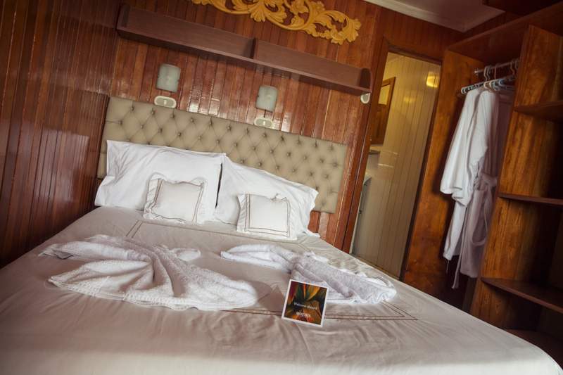 Cabins on board the Amatista all have exterior view windows with air conditioning and private bathrooms. Also please note that they are set up as twins but can be converted into a double bed if requested.