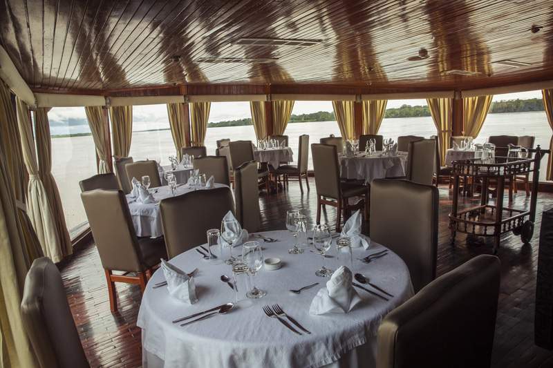 The ship was built with a unique combination of Amazonian hard wood and steel, with a design typical to the region. It is beautifully furnished with polished wooden floors. This air conditioned ship has one dining area, an open bar area and one observation deck.