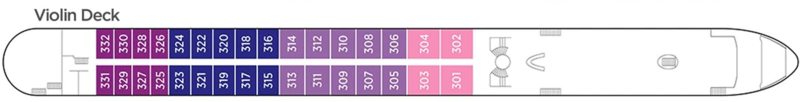 Launch year | Language | Gross tonnage | Length | Width | Currency | Speed | Capacity | Crew count | Deck count | Cabin count | Large cabin count | Wheelchair cabin count | Electrical plugs |
