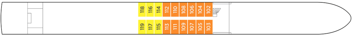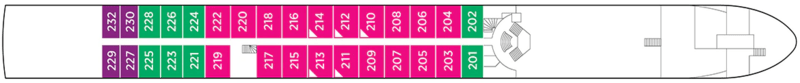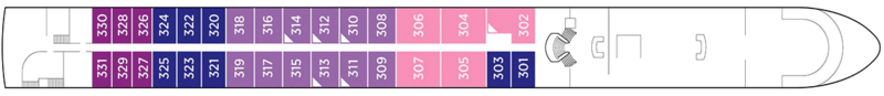 Launch year | Language | Gross tonnage | Length | Width | Currency | Speed | Capacity | Crew count | Deck count | Cabin count | Large cabin count | Wheelchair cabin count | Electrical plugs |