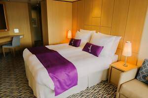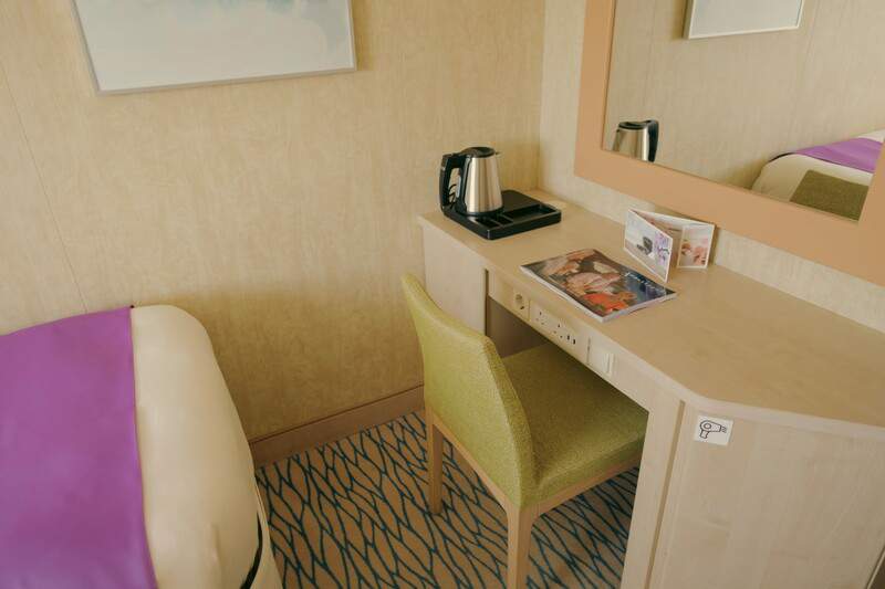 We offer a range of cabins spanning six accommodation decks from the Reception Deck 5 up to the Sun Deck 12. We have 21 twin and single cabin categories to suit a wide range of preferences and pockets. Our cabins are generally more spacious and cater to today’s climate, averaging 15-16 square meters, with cabin types broadly classified as standard, superior, premium, or de-luxe. Our dedicated housekeeping team clean cabins once a day and provide 24-hour room service at a supplementary cost. All our cabins are air-conditioned with ensuite facilities including a shower and ample storage space with room under the beds to store suitcases.