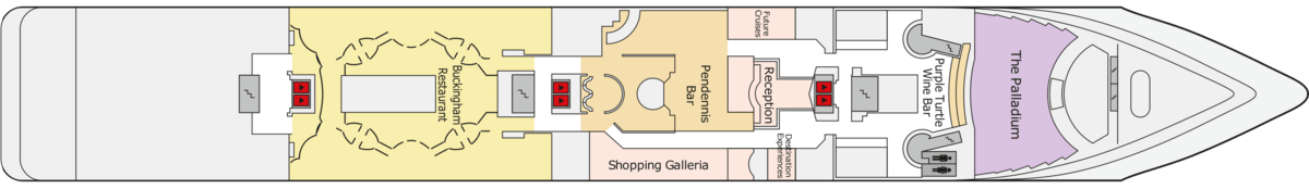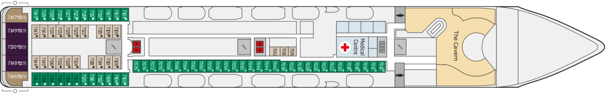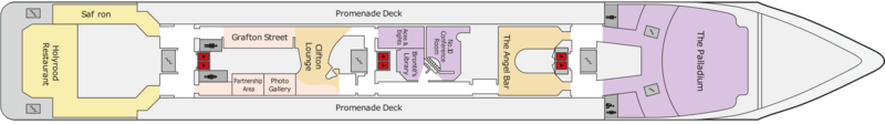 Her dining options will inspire you with two main restaurants, speciality dining options*, and a more casual bistro style café. Sit back, relax and enjoy a drink in one of her four bars, lounges and pub. Or take in a show in the a tiered main theatre, or discover your hidden talents casino, card room, library, and craft studio.