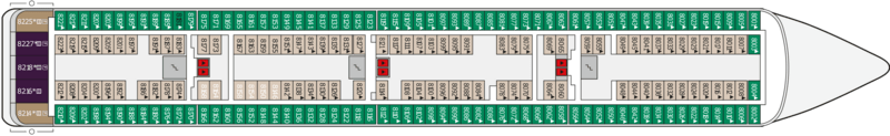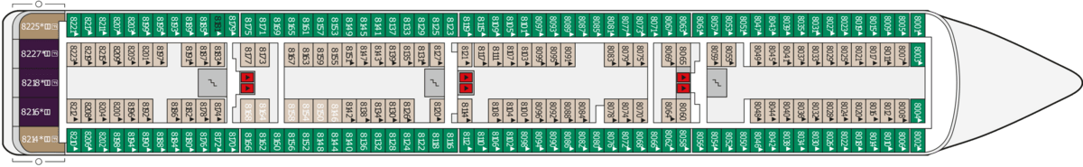 | Launch year | Refit year | Language | Gross tonnage | Length | Width | Currency | Speed | Capacity | Deck count | Cabin count | Electrical plugs |
