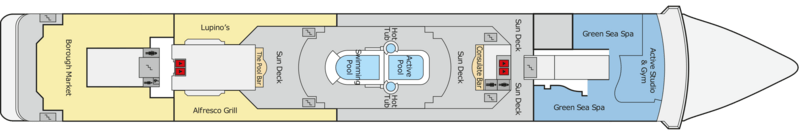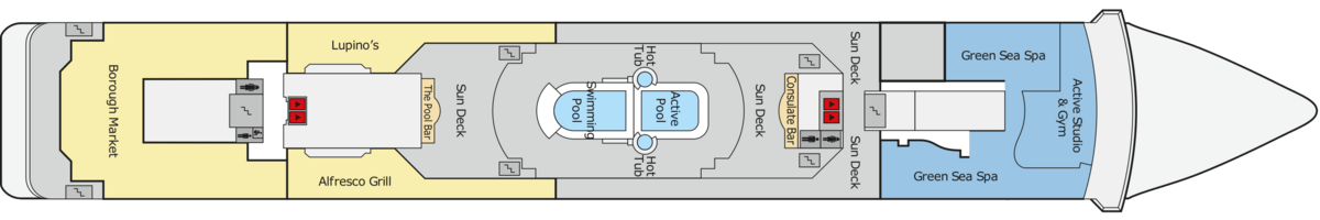 Other facilities include the wellness centre, gym, two swimming pools and a range of retail shops, perfect for days at sea.