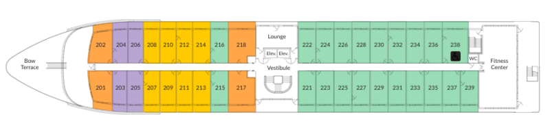 With a capacity of just 184 guests, this new ship has the modern design features and contemporary styling that today’s traveller has come to expect. Featured are lounges soaring 40 feet above the water with triple the glass of other riverboats, offering astounding views. American Song also showcases a four-story glass-enclosed atrium with a large domed skylight, which serves as the central gathering point for the entire ship.