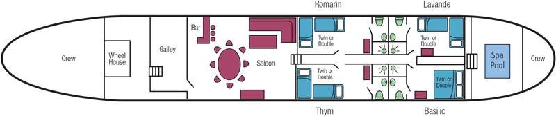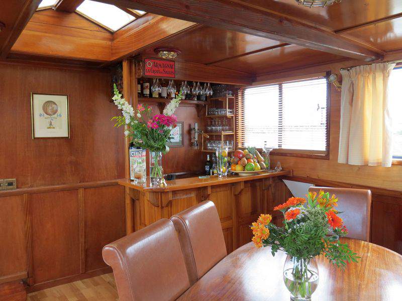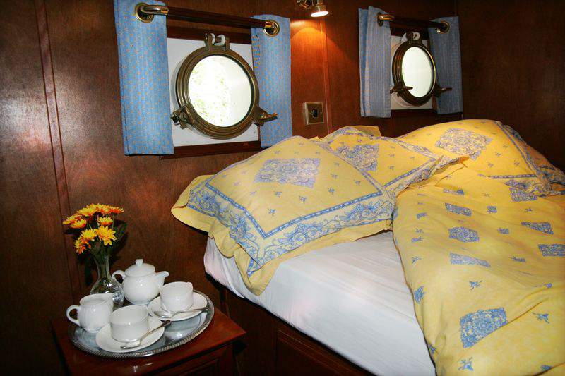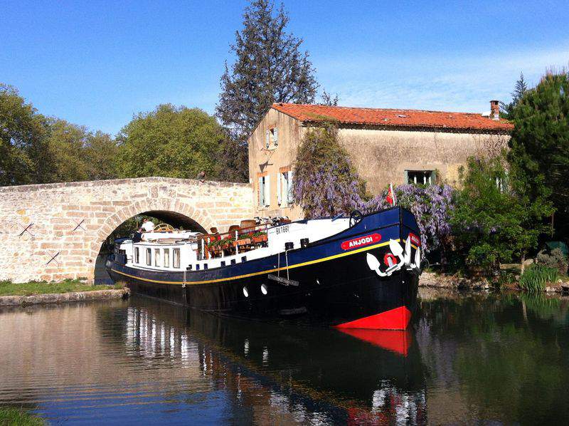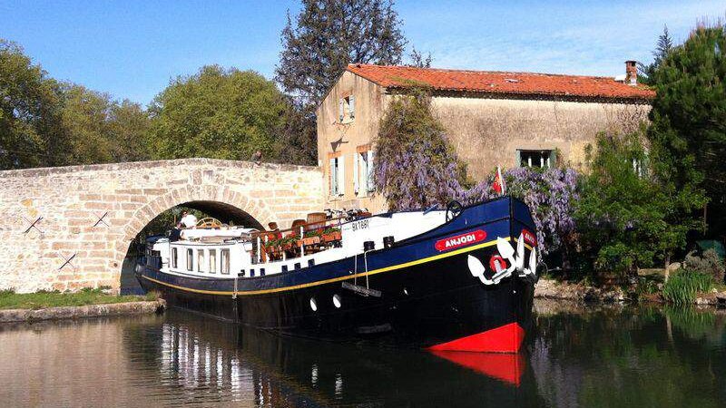 The 8 passenger Anjodi is of classic Dutch design, specifically rebuilt to navigate the 330-year-old Canal du Midi. She has been completely refurbished in the tasteful tradition of African hardwoods, hand-crafted panelling and shining brass, creating a comfortable and charming ambience reminiscent of a classic yacht.