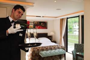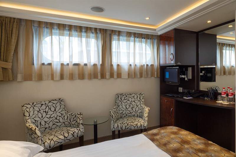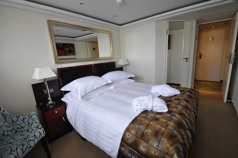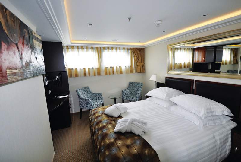 To ensure guests have the most comfortable stay possible whilst on board, all suites receive fresh bottled water daily and are also serviced daily. In selected suites a Butler service is also available. In order to make your stay onboard as comfortable as possible large wardrobes are in each suite allowing you to unpack once and relax. Each suite also has additional amenities including Entertainment-On-Demand, complimentary Wi-Fi, movies, music and English language TV stations; climate-controlled air conditioning; and an in-room safe. Each suite also has a large, spacious sitting area with a sofa and two chairs as well as a spacious bathroom complete with a hairdryer, plush bathrobes, slippers and designer toiletries.