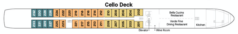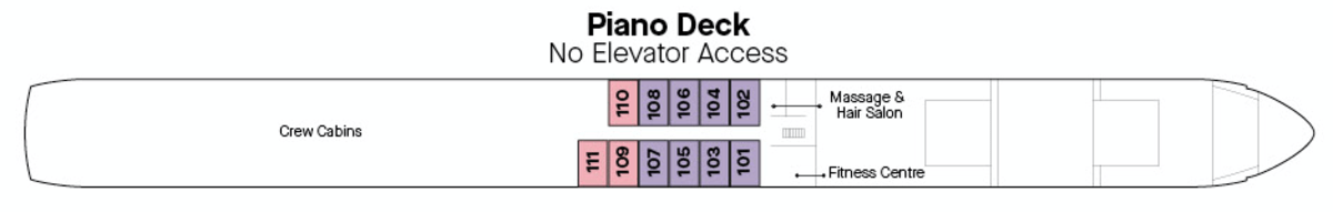 | Launch year | Language | Gross tonnage | Length | Width | Currency | Speed | Capacity | Crew count | Deck count | Cabin count | Large cabin count | Wheelchair cabin count | Electrical plugs |