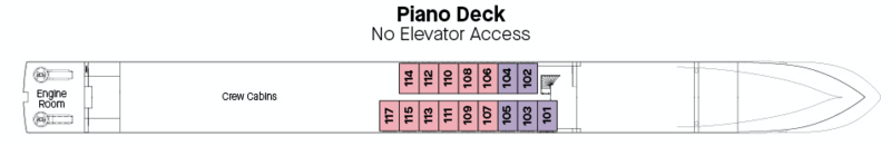 | Launch year | Language | Gross tonnage | Length | Width | Currency | Speed | Capacity | Crew count | Deck count | Cabin count | Large cabin count | Wheelchair cabin count | Electrical plugs |