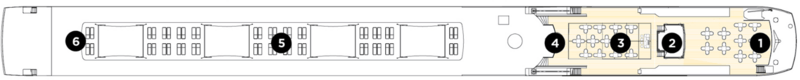 Launch year | Language | Length | Width | Currency | Speed | Capacity | Crew count | Deck count | Cabin count | Large cabin count | Wheelchair cabin count | Electrical plugs |
