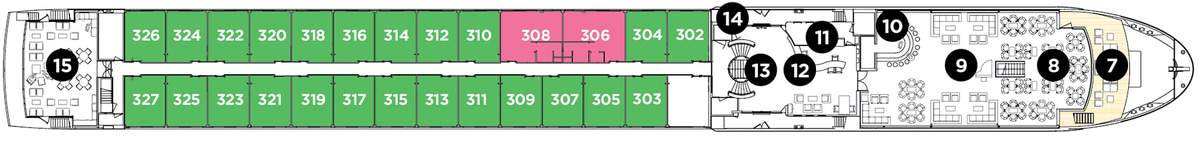 The Avalon Poetry II offers a delightfully intimate cruise setting. Like its sister Suite Ships, the Poetry II features two full The Avalon Poetry II offers a delightfully intimate cruise setting. Like its sister Suite Ships, the Poetry II features two full decks of Panorama Suites with wall-to-wall, floor-to-ceiling panoramic windows that create river cruising’s only Open-Air Balcony. With a spacious 200 square feet, Panorama Suites are more than 30% larger than the industry standard. Stretch out at day’s end and wake to the world at your feet with Comfort Collection bed that faces the view. It truly is a view with a room! Onboard amenities include an alternative dining option in the Panorama Bistro, complimentary computer use in public areas and Wi-Fi access, a Fitness Center, and a spacious Sky Deck with premium lounge chairs, whirlpool, and light al fresco lunches at the Sky Bistro. The Avalon Poetry II truly is poetry in motion!