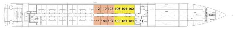 | Launch year | Language | Gross tonnage | Length | Currency | Speed | Capacity | Crew count | Deck count | Cabin count | Large cabin count | Wheelchair cabin count | Electrical plugs |