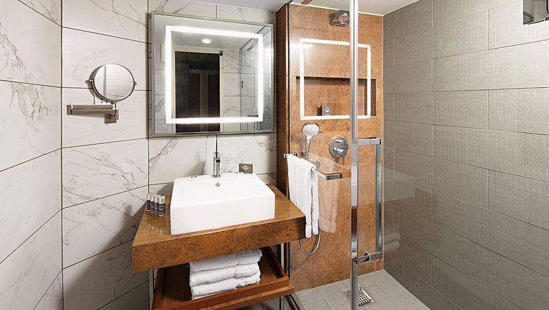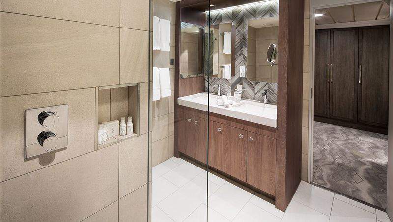 - Marble master bathroom with shower. Journey and Quest suites feature a tub.