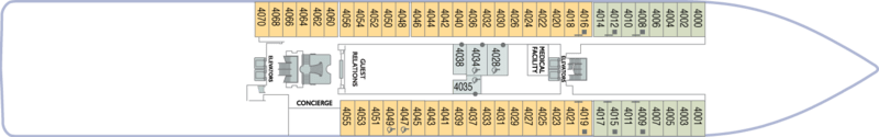 | Launch year | Refit year | Language | Gross tonnage | Length | Width | Currency | Speed | Capacity | Crew count | Deck count | Cabin count | Wheelchair cabin count | Electrical plugs |