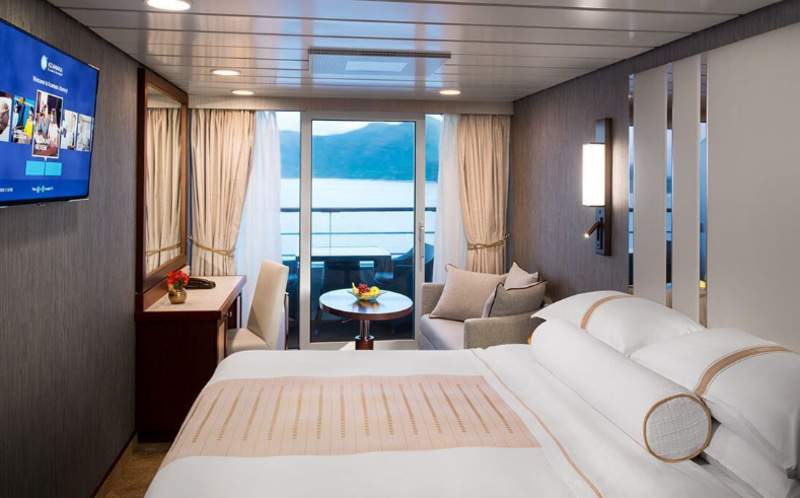 A boutique hotel at sea, each of our cruise suites offer the comforts of a five-star hotel suite with the added decadence of ocean views, sea breezes, and butler service. Relax with spa-like sea breezes, and butler service. Relax with spa-like amenities including plush cotton robes and slippers, French bath products, fresh flowers, and fine linens. Open the sliding glass doors to your private balcony and curl up with book, dine al fresco dining, or stargaze. Share a drink of your favorite spirit—on the house. And should you need anything, your English-trained butler is never more than a call away, ready to assist with reservations, private parties, dinners for two, and much more.