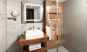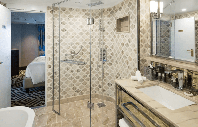 - Marble master bathroom with shower. Journey and Quest suites feature a tub.