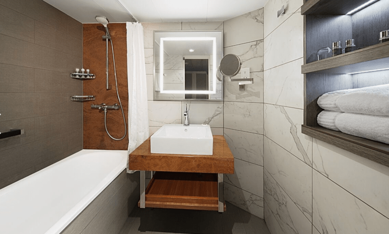 With a large living room and a separate bedroom —plus your own private veranda —your suite offers a restful retreat after your immersive experiences on land. Enjoy elegant, contemporary d6cor, and rich marble touches. You'll be spoiled by the attention to detail in these beautiful suites, and of course, all the pampering too.