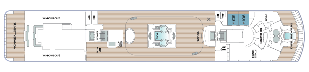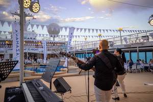 Casual “pool grill” by day. Then, fine tablecloths and flickering candles will set the mood for a sit-down al fresco dining experience by night. Taste your way around the world with exclusive personalized dishes using local flavors of the places we visit on our Destination Immersion® cuisine dinner menu served by our professional wait staff. And for a little touch of whimsy, a self-serve frozen yogurt station—Swirl & Top. With a variety of flavors and your choice of toppings, it’s the perfect way to cool off during the day or end your evening meal.