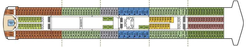- Paddling pool - 0.25 metres deep. Located on Aqua Deck. Has 2 ladders with 4 steps up and 4 steps down on each.