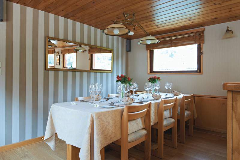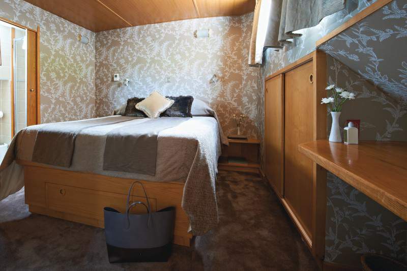 Four generously sized en-suite cabins accommodate up to eight guests in sumptuous surroundings. Light floods in through picture-frame windows in a lounge where guests can dine on exceptional French cuisine.