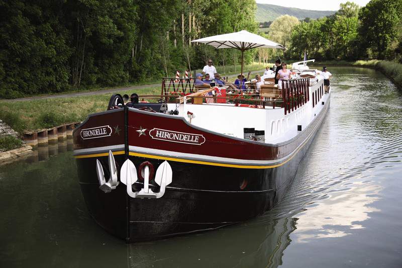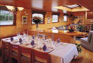 Eight passengers can enjoy the supreme comfort of this bright, airy barge, cruising among the grand châteaux and vineyards of Burgundy.