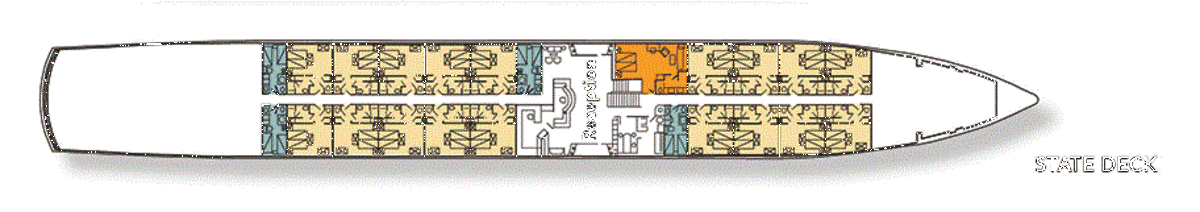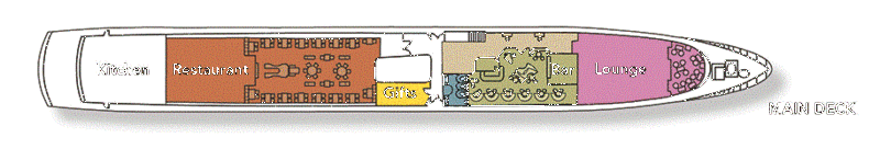 | Launch year | Refit year | Language | Gross tonnage | Length | Width | Currency | Capacity | Crew count | Deck count | Cabin count | Electrical plugs |