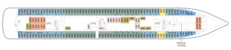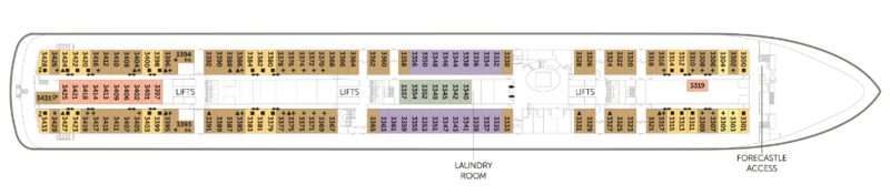 Guests can choose from a range of Inside Cabins, Ocean View Cabins, Balcony Cabins, Terrace Cabins and Suites and can reserve the cabin number of their choice.