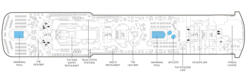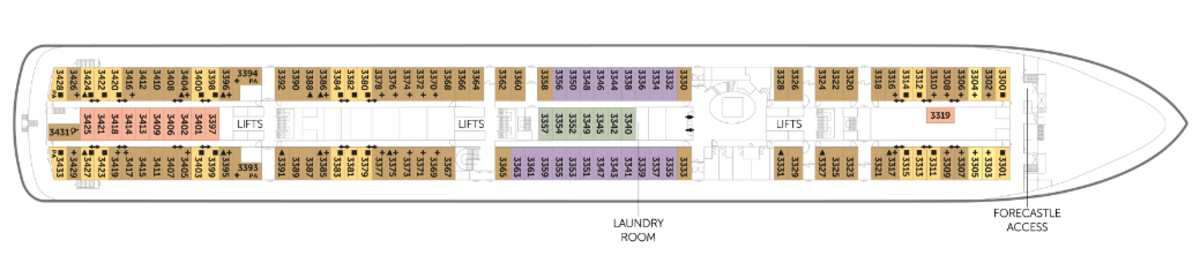 - Deck(s): Promenade Deck 3, Coral Deck 2 & Marina Deck 1
