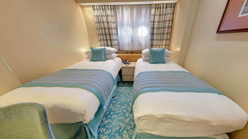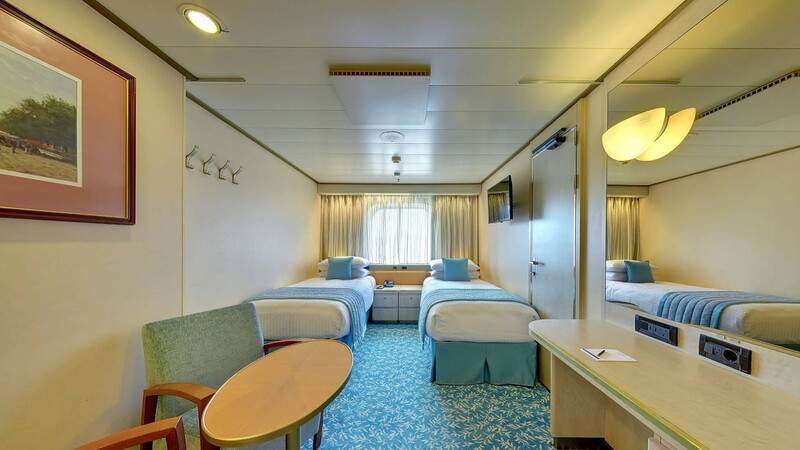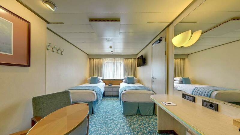 Bolette's F Grade Ocean View cabins feature porthole windows that not only bathe the interior in natural light, but also provides guests with fantastic ocean views. Situated forward and aft on Coral Deck 2 and Marina Deck 1.