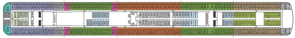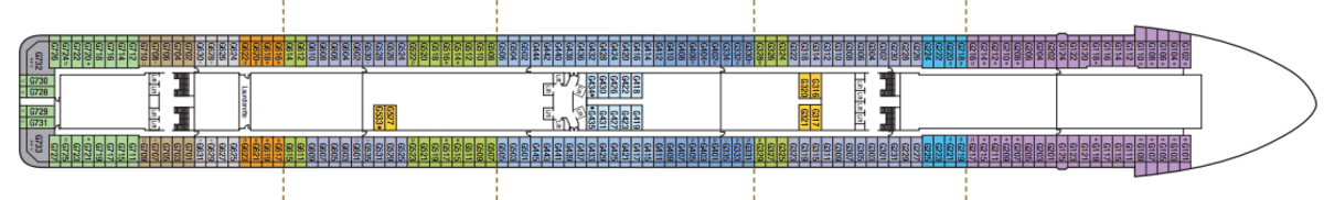 Launch year | Language | Gross tonnage | Length | Currency | Speed | Capacity | Crew count | Deck count | Cabin count | Wheelchair cabin count | Electrical plugs |
