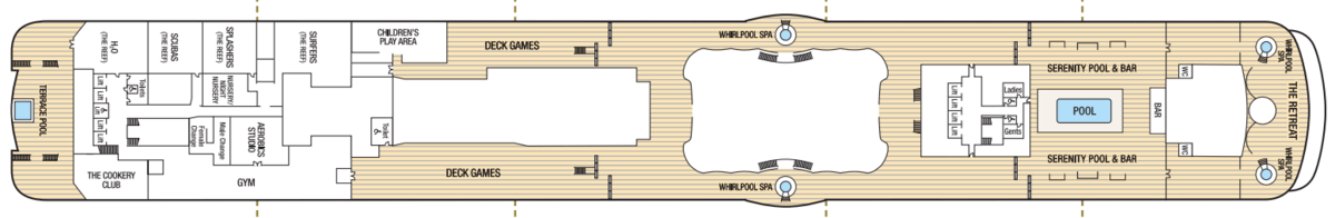 - Serenity pool - Outdoor pool 1.2 to 1.8 meters deep. Located on Sun Deck - adult only