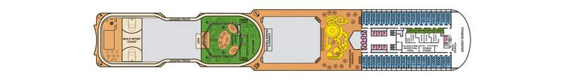 Your Carnival cruise may take you far, far away from the competitive daily rat-race, but you’ll find an oasis of friendly competition at SportSquare. Take on friends at mini-golf, battle strangers at basketball, or push yourself to new heights at SkyCourse™... or to record-setting low times at the jogging track. SportSquare™ gets you in the game with soccer and volleyball (the b-ball court converts!), brings pool, foosball and ping-pong to the table, and rounds things out for shaping up with your choice of stationary bikes, elliptical machines, weight-lifting equipment and punching bags. Are you game? (SportSquare offerings vary by ship.)
